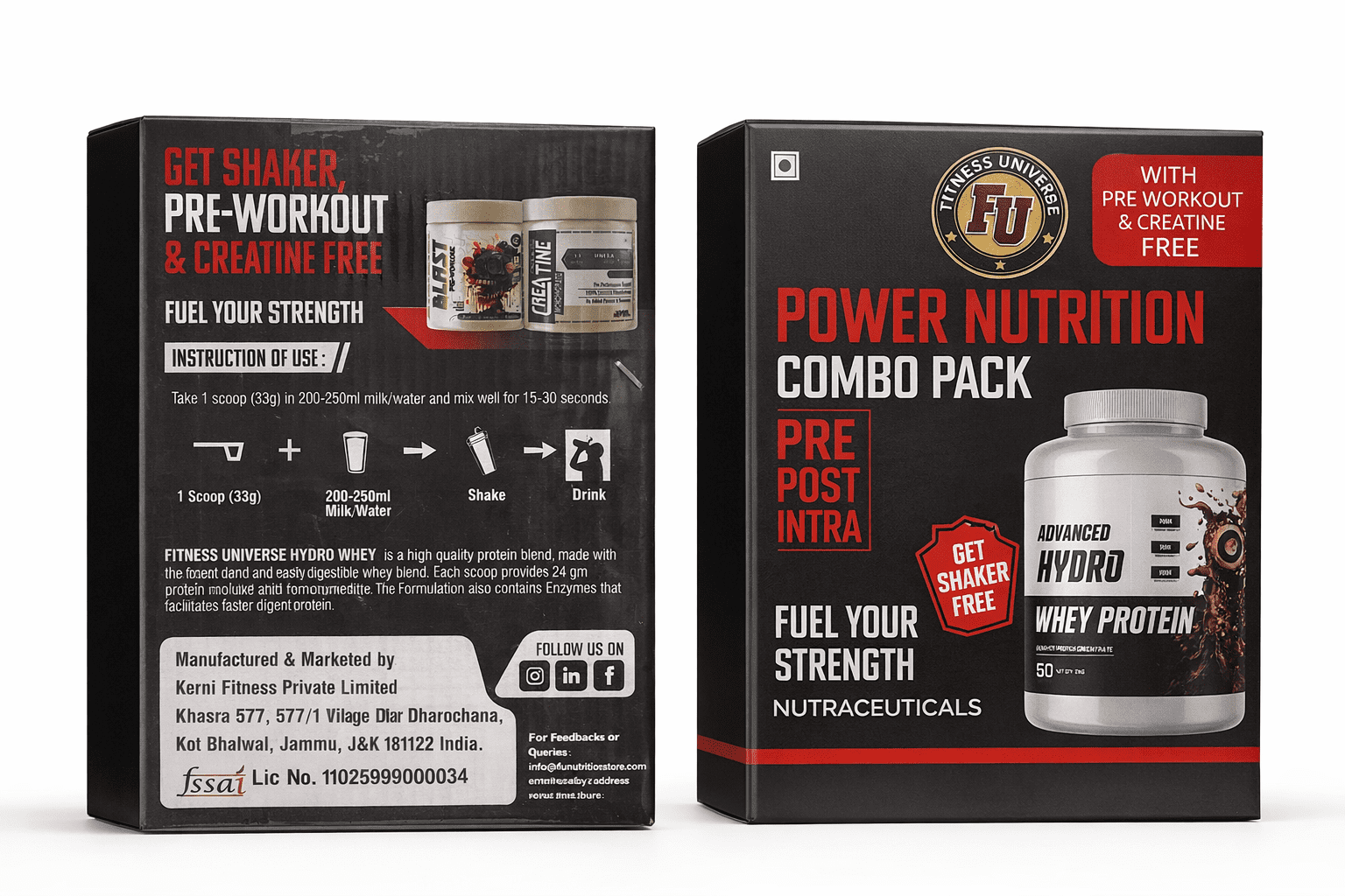Take your performance and recovery to the next level with Fitness Universe Advanced Hydro Whey Protein — a premium blend of Whey Protein Isolate and Whey Protein Concentrate designed for maximum absorption, lean muscle gain, and rapid recovery.